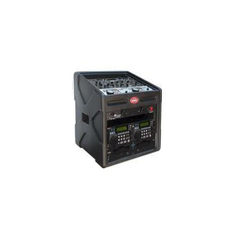 ESTUCHE SKB PARA ESTACIÓN DE DJ. MODELO: 1SKB-106DJ. 10 ESPACIOS DE RACK EN LA PARTE SUPERIOR Y 6 ESPACIOS EN LA PARTE INFERIOR. ROTO MOLDEADO. CUBIERTA QUE PROTEGE CONTRA EL POLVO. PANEL DE ACCESO POSTERIOR. SUPERIOR: (10 U) PROFUNDIDAD 5.25" - 2.5" (PE