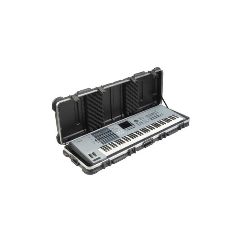 ESTUCHE PARA TECLADO DE 76 TECLAS. CUMPLE CON LA ESPECIFICACIÓN ATA CAT 1 PARA CONTENEDOR DE AEROLÍNEA. INCLUYE CERRADURAS TSA. ESQUINEROS PATENTADOS. TOPES EXTERIORES QUE PROTEGEN RIBETE Y HARDWARE. RUEDAS INCORPORADAS.